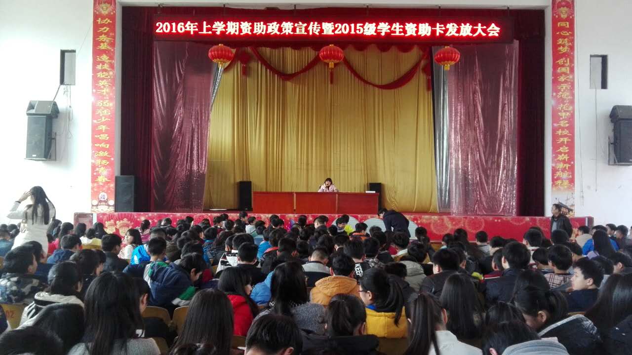 2016年上學期生物機電學校資助宣傳大會 發(fā)布時間:2016-03-16      來源:湘潭生物機電學校