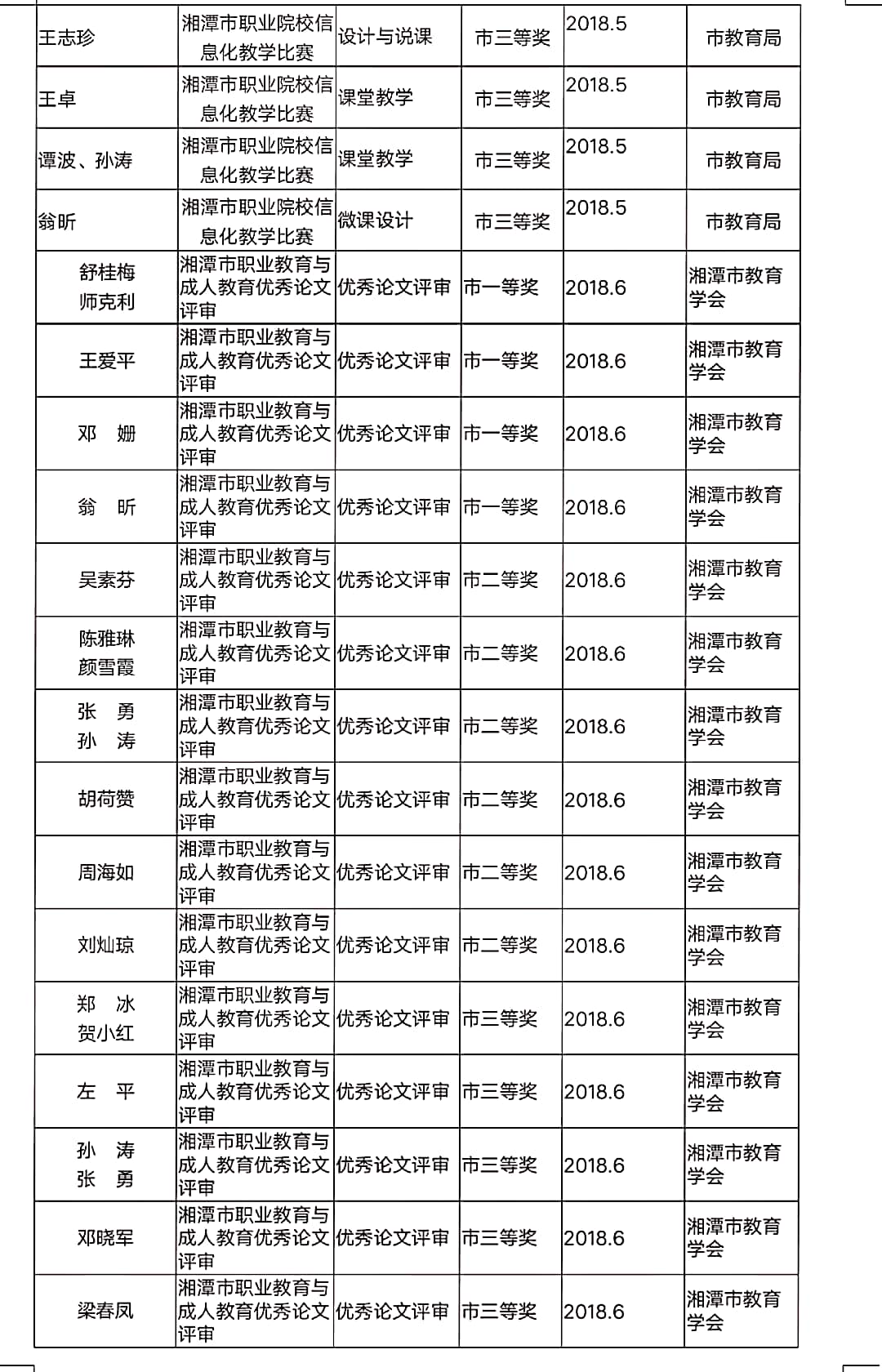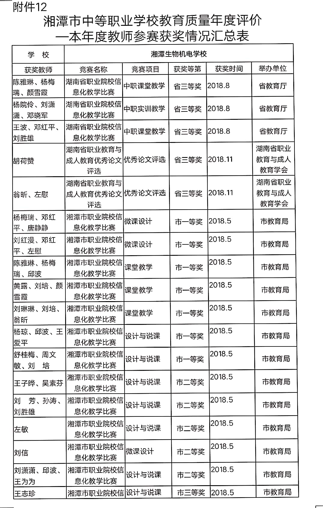 2018年度學(xué)校教師參加各級(jí)、各類競(jìng)賽獲獎(jiǎng)情況匯總表 發(fā)布時(shí)間:2019-06-04      來(lái)源: