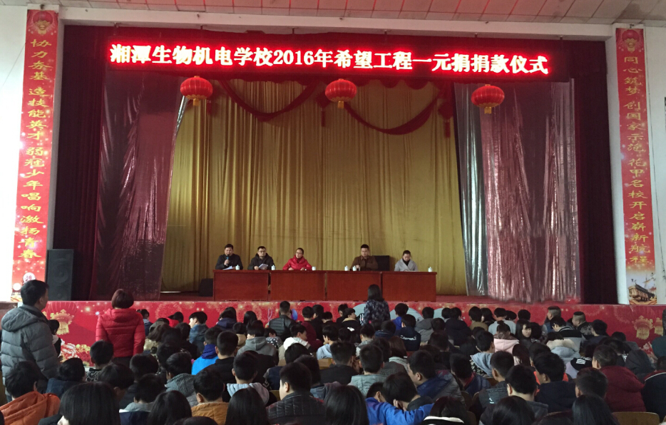 為響應(yīng)共青團(tuán)湘潭市委、市教育局團(tuán)委的號(hào)召,由校團(tuán)委精心組織安排,我校于2016年3月9日下午在學(xué)校大禮堂開展了一場(chǎng)“希望工程一元捐”愛心助學(xué)捐款活動(dòng)。師生們紛紛慷慨解囊、積極捐款,譜寫了一曲愛的樂章,很好的體現(xiàn)了我們的校園充滿了愛心和正能量!