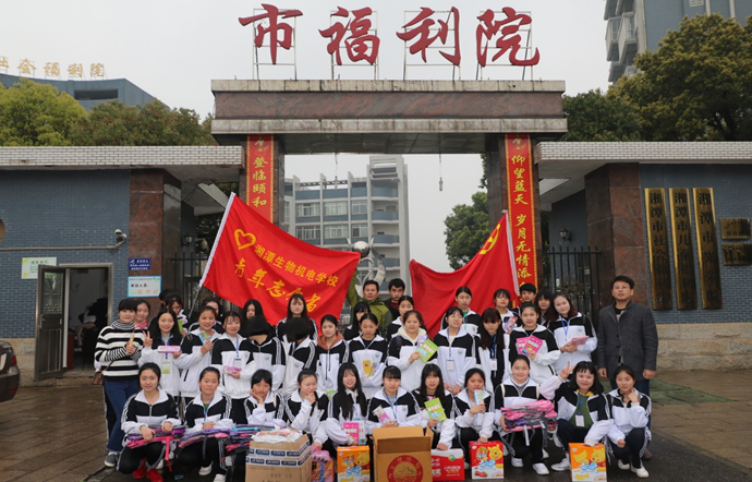 (五)在校團(tuán)委的帶領(lǐng)下,商務(wù)四班的同學(xué)們帶著學(xué)習(xí)用品、營養(yǎng)品來到湘潭市兒童福利院看望孤寡兒童。