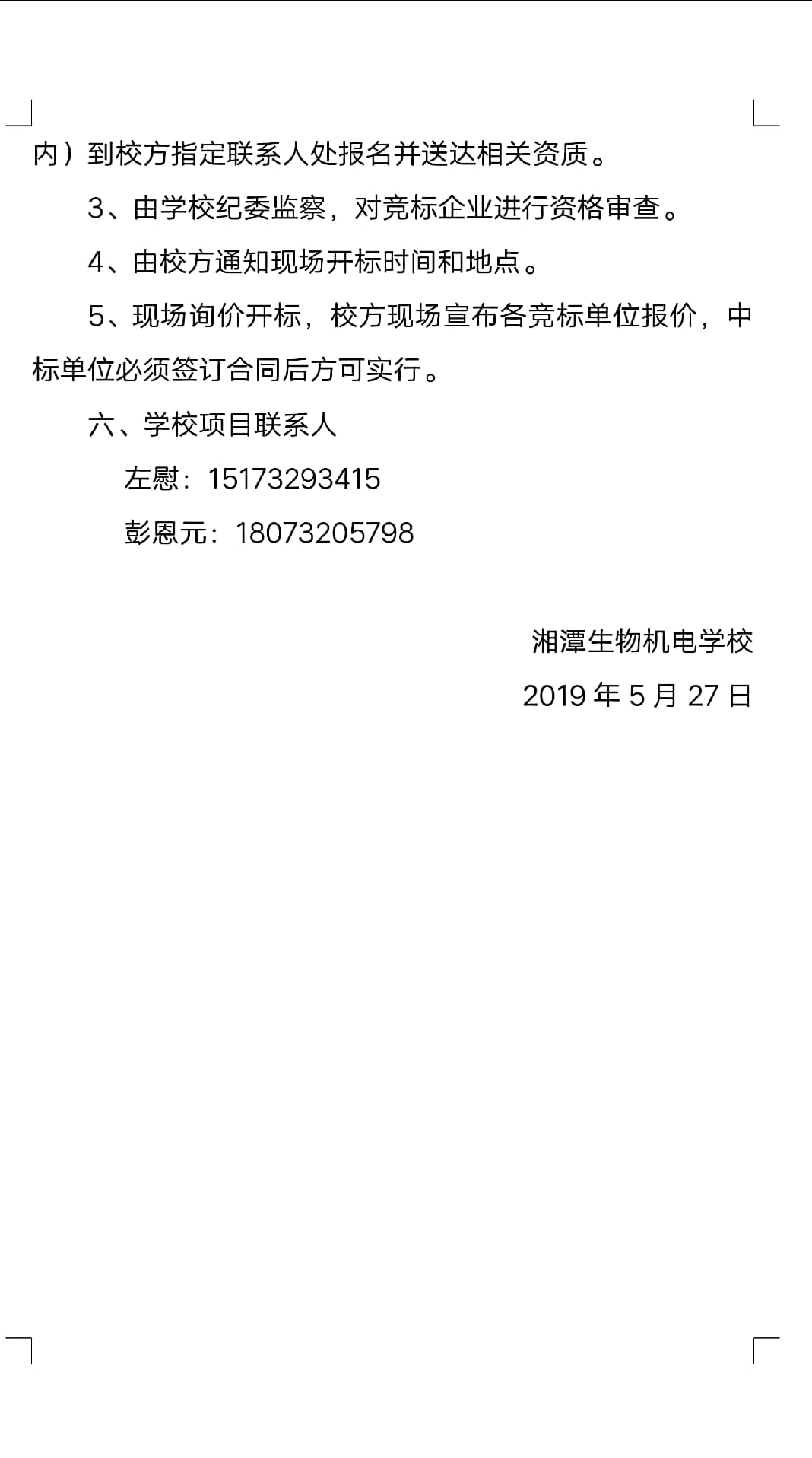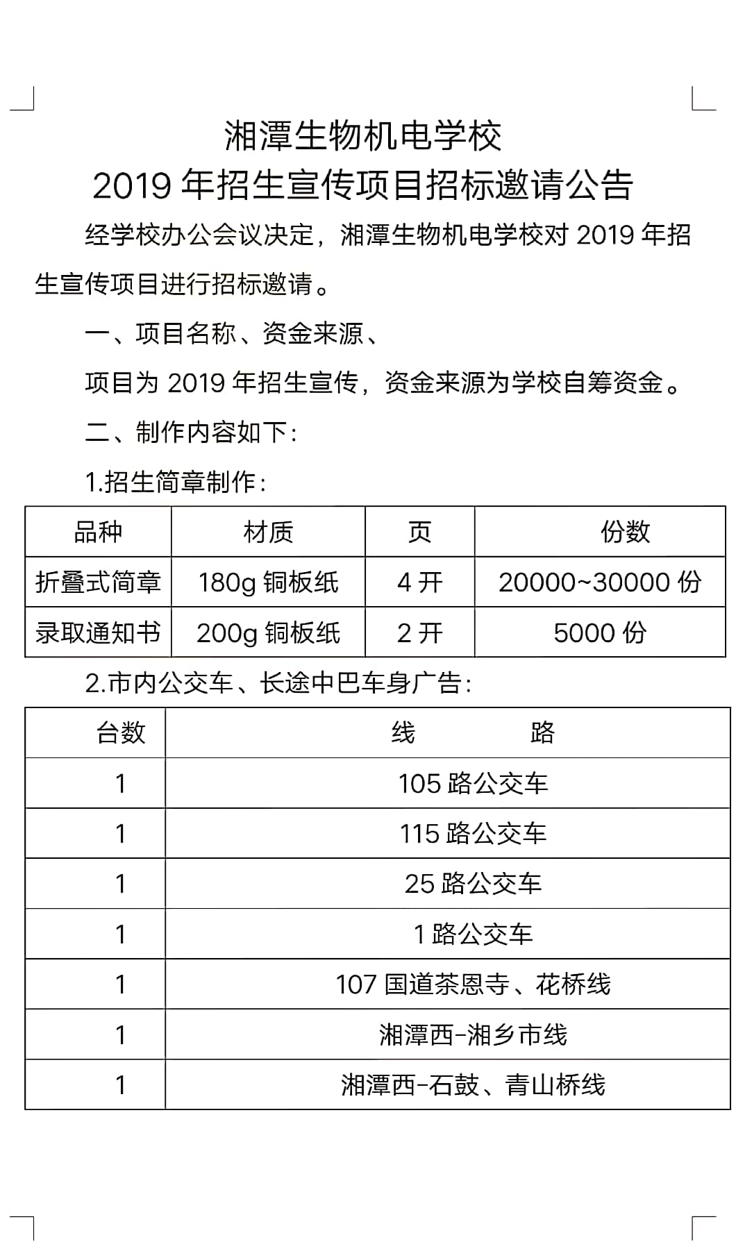 湘潭生物機(jī)電學(xué)校 2019年招生宣傳項(xiàng)目招標(biāo)邀請(qǐng)公告 發(fā)布時(shí)間:2019-05-27      來源:湘潭生物機(jī)電學(xué)校