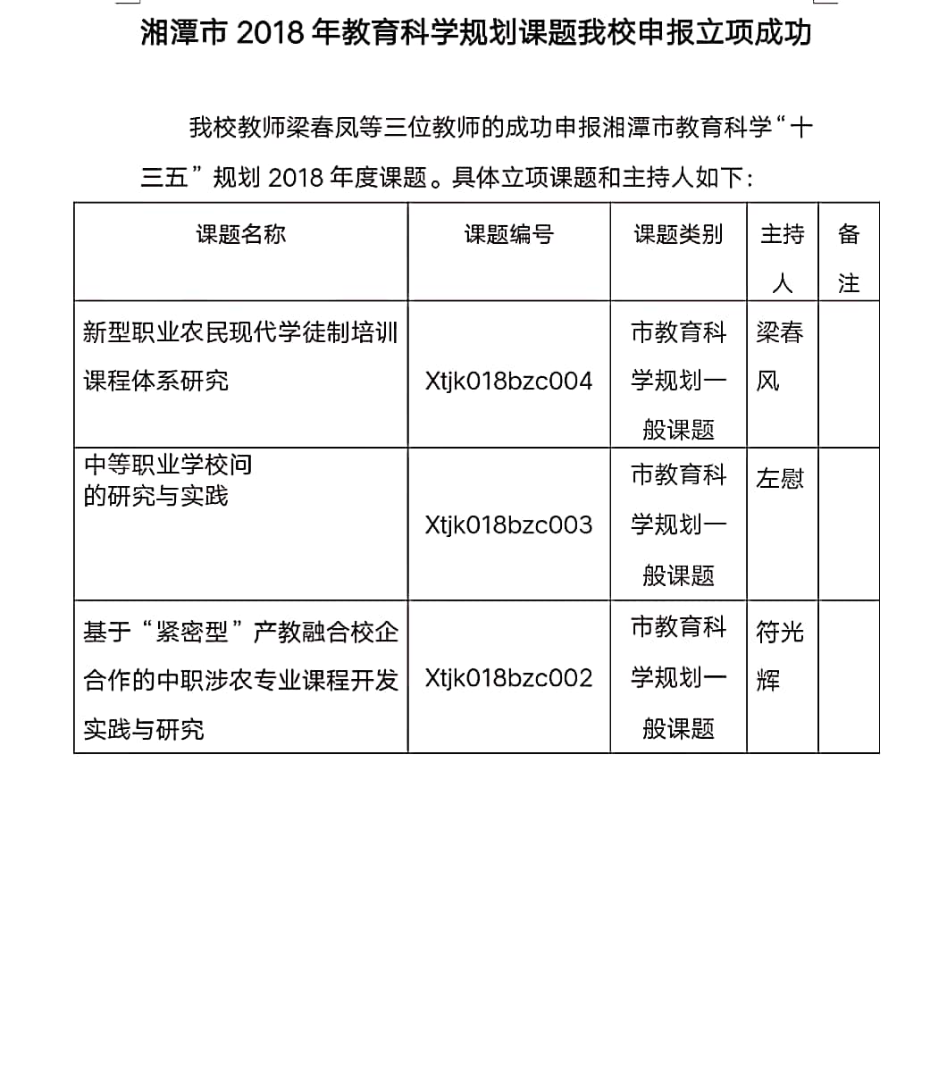 湘潭市2018年教育科學(xué)規(guī)劃課題我校申報(bào)立項(xiàng)成功 發(fā)布時(shí)間:2019-06-05      來(lái)源: