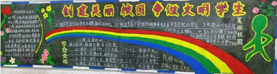 通過這次“創(chuàng)文”黑板報(bào)比賽,讓同學(xué)們深深認(rèn)識(shí)到文明就是一個(gè)城市的形象,就是城市的未來,就是城市居民的幸福。同時(shí),也號(hào)召每一個(gè)同學(xué)都來創(chuàng)文明城,做文明人。