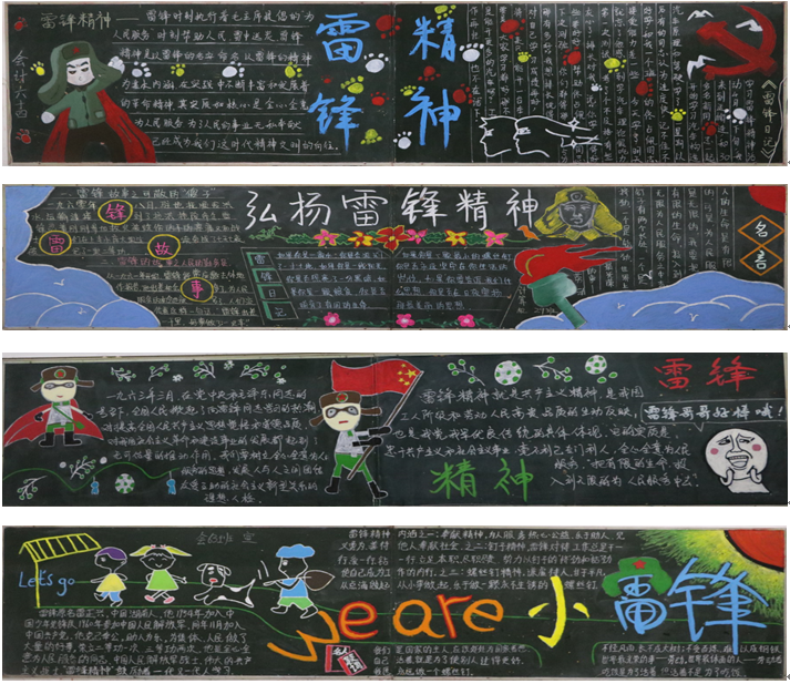 (八)充分利用學(xué)校的黑板報(bào)宣傳陣地,為3月學(xué)雷鋒活動(dòng)宣傳造勢,校團(tuán)委舉辦了"學(xué)習(xí)雷鋒,做美德少年"主題黑板報(bào)比賽。