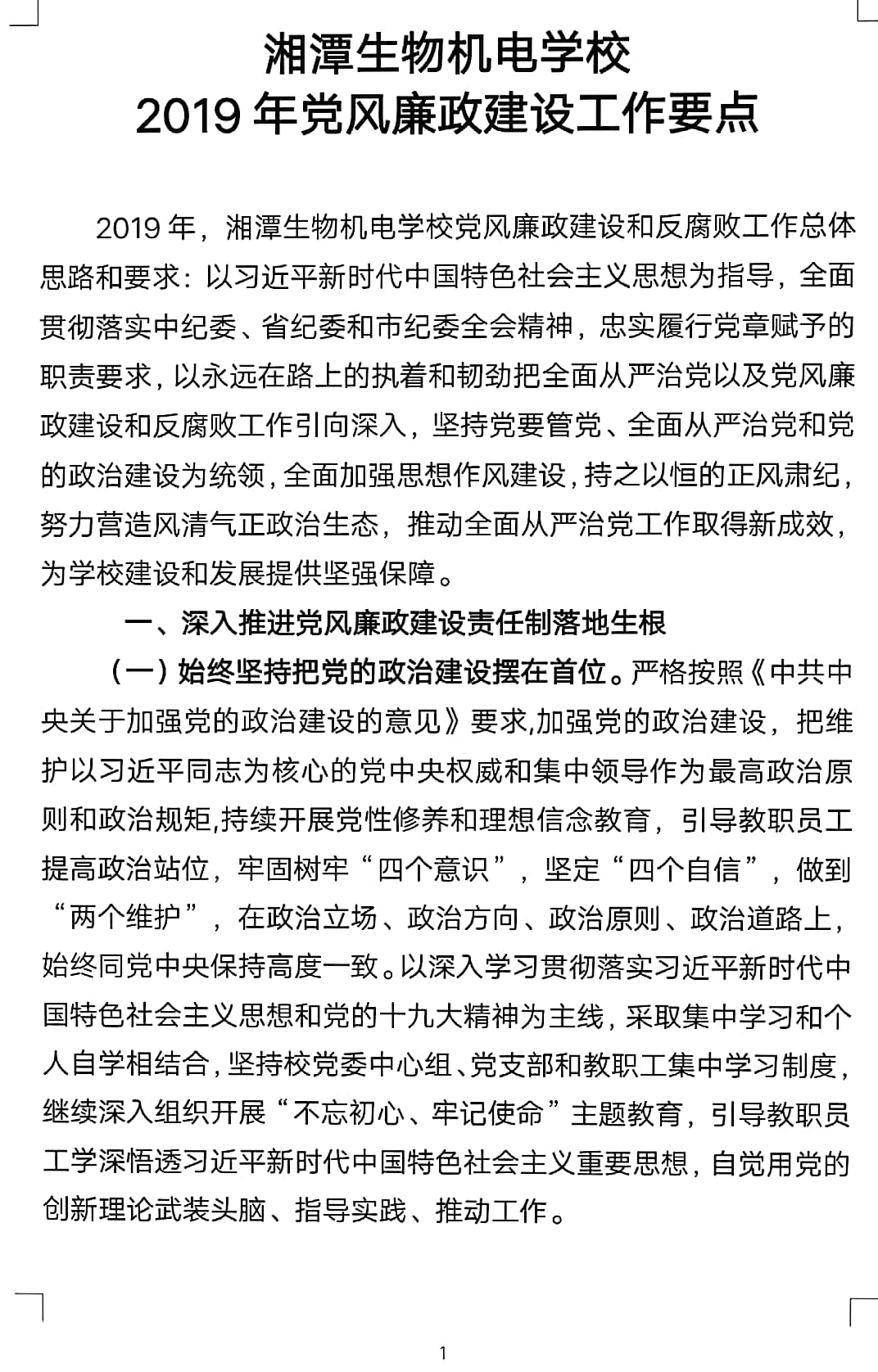 湘潭生物機電學(xué)校2019年黨風廉政建設(shè)工作要點 發(fā)布時間:2019-05-29      來源: